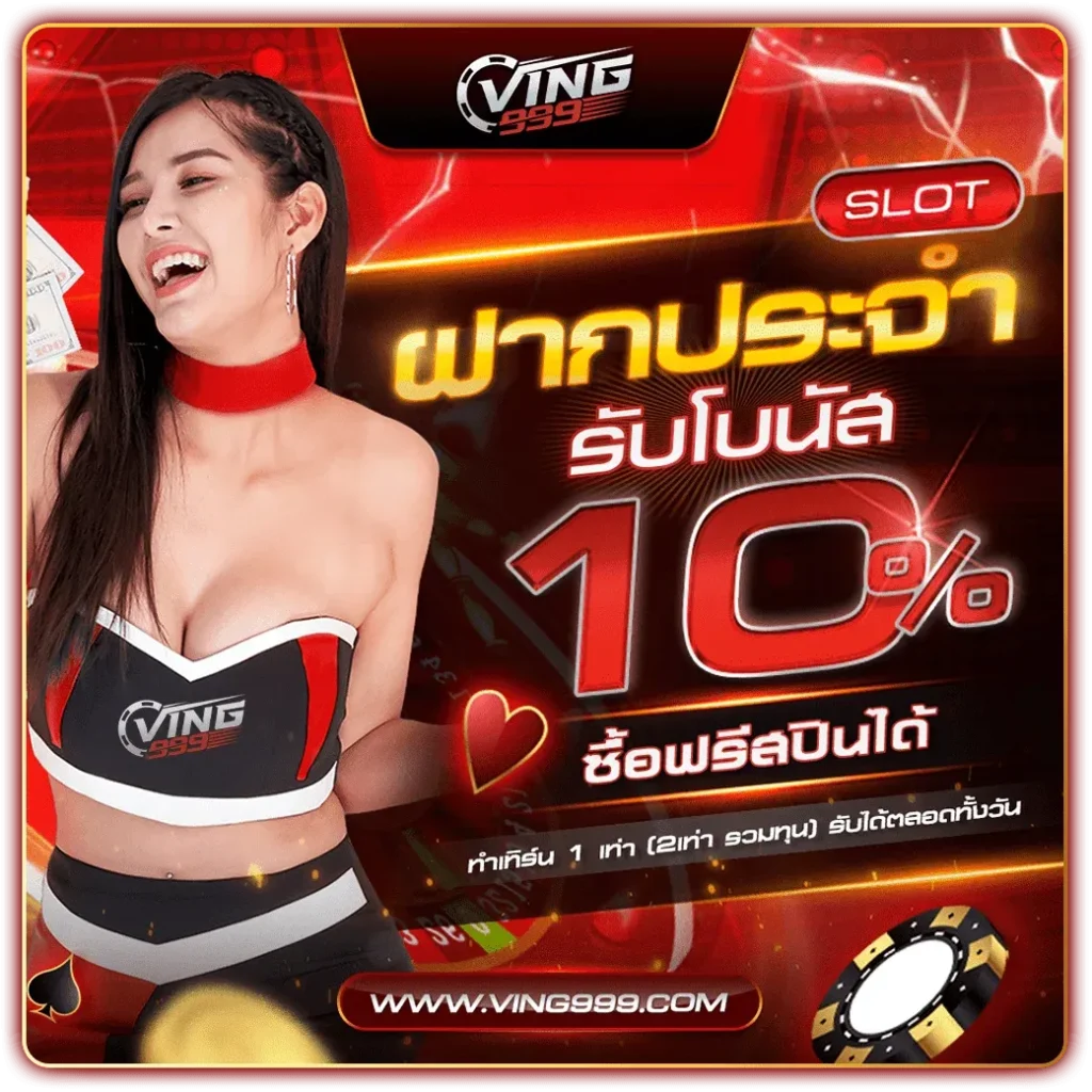 เว็บไซต์เรามอบ โปรโมชั่นVing999 ที่น่าสนใจสำหรับทั้งสมาชิกใหม่และสมาชิกเก่า รวมถึงโบนัสต้อนรับที่ทำให้คุณเริ่มต้นการเล่นเกมสล็อตออนไลน์ได้อย่างมี ประสิทธิภาพ โบนัสที่มีมูลค่ามากมายยังช่วยเพิ่มโอกาสในการทำกำไรจากการเล่นสล็อต